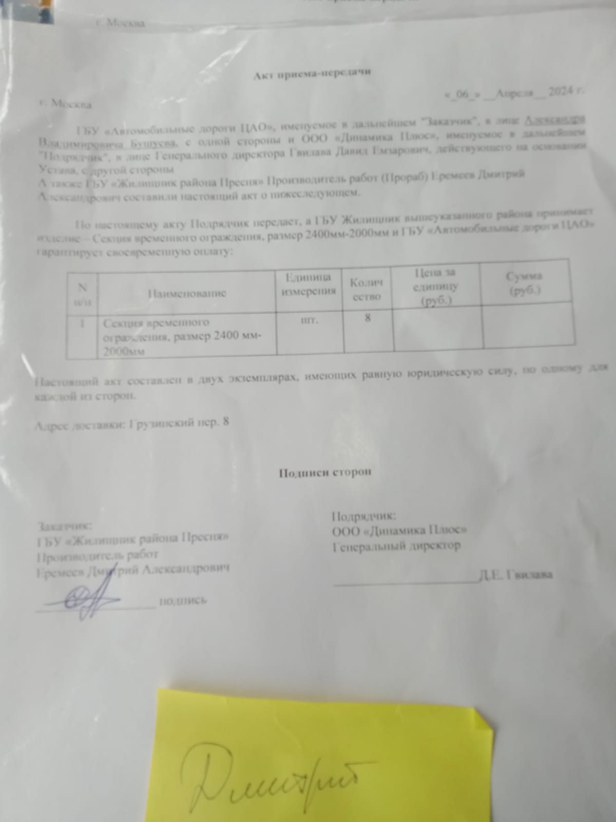 Передача ограждений жилищнику.